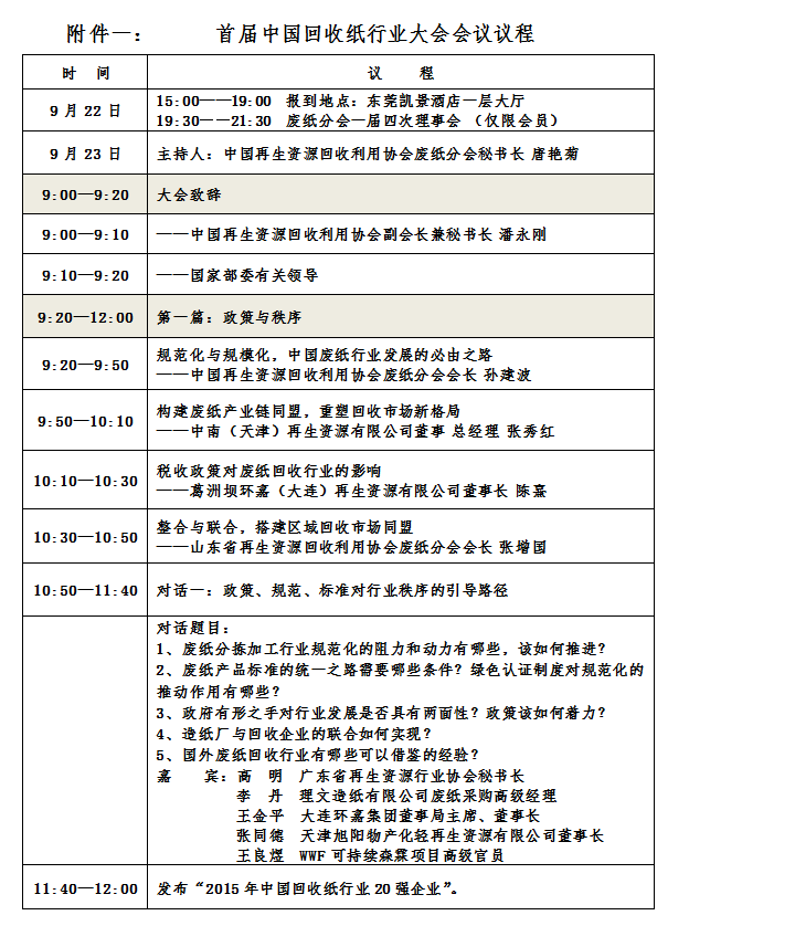 會(huì)議名稱:首屆中國回收紙行業(yè)大會(huì)