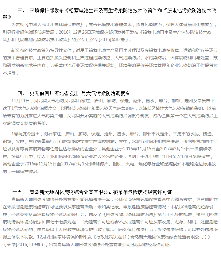盤點 | 2016危險廢物行業(yè)大事記