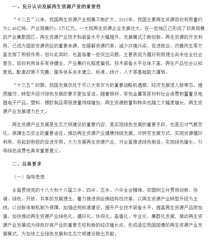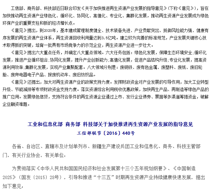三部委聯(lián)合發(fā)文推進再生資源產(chǎn)業(yè)發(fā)展
