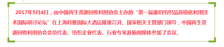 第一屆廢舊紡織品高值化利用技術(shù)國(guó)際研討論壇在上海召開